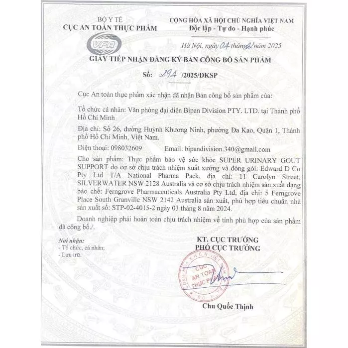 Công thức hỗ trợ đào thải acid uric